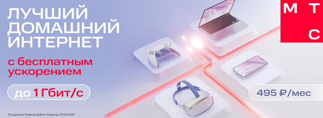 Подключите бесплатное ускорение сейчас и экономьте на самом быстром интернете от МТС в течение года!
